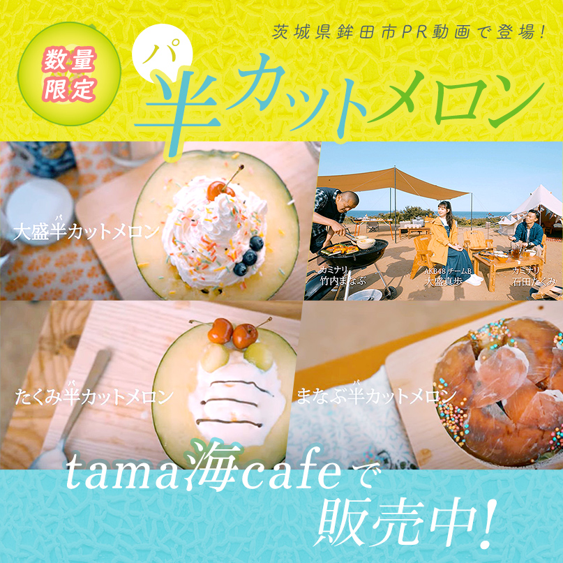 カミナリ、AKB48大盛真歩とメロンキャンプ/茨城県鉾田市PR動画で登場した「半(パ)カットメロン」が楽しめます!